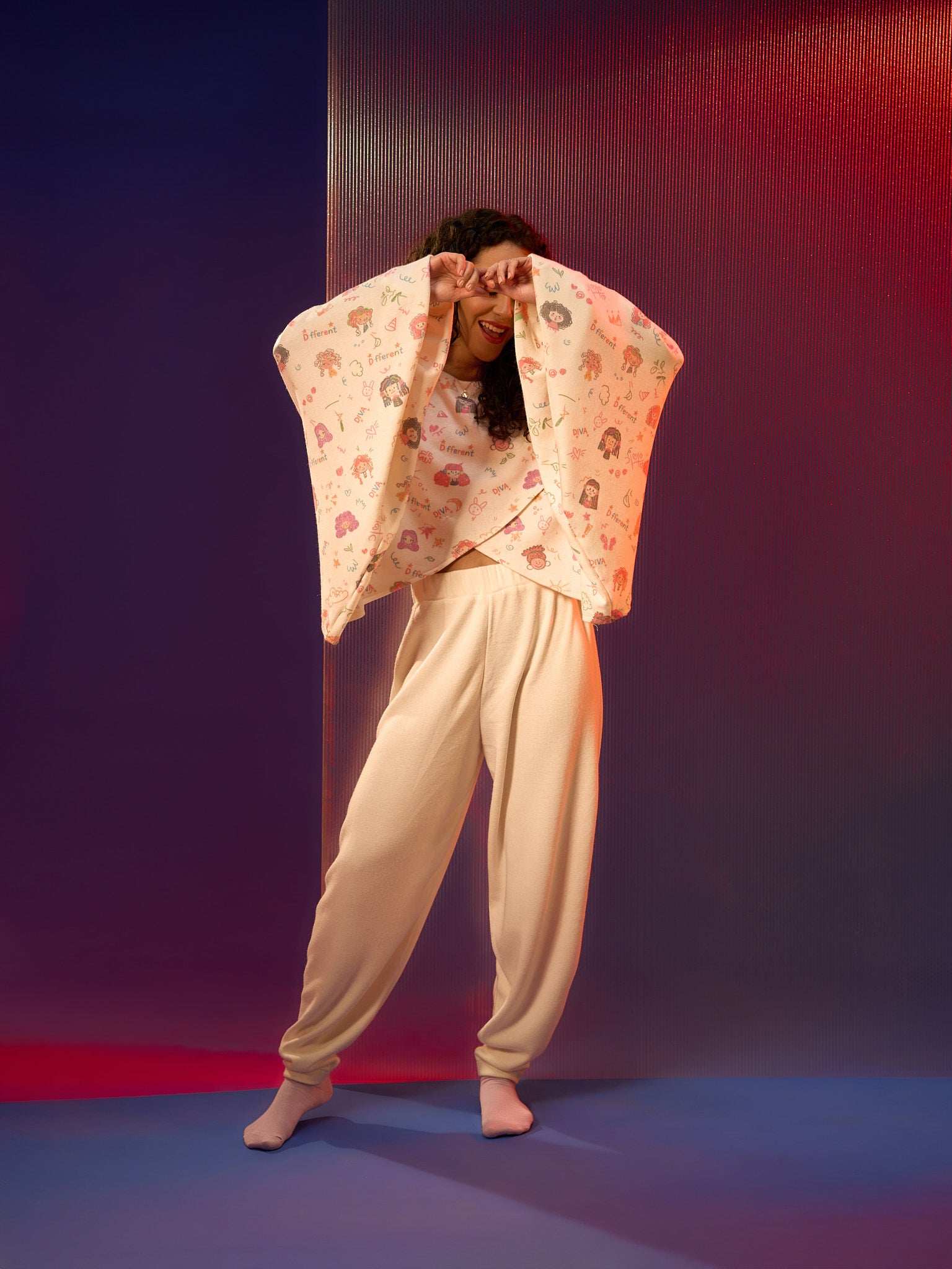 This creamy lounge set is soft, playful, and effortlessly cute. The off-white joggers keep it cozy and relaxed, while the cropped long-sleeve top adds a fun pops. It’s the kind of set that feels like a warm hug — comfy enough to stay in, cute enough to feel like a true Diva at home.